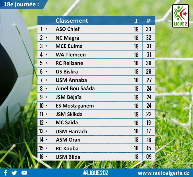 Lors de la première partie de cette 18e manche, jouée vendredi, l’USM El Harrach a réussi à s’extirper de la zone rouge en allant gagner à El Eulma (1-2). Le NC Magra est monté sur la seconde place du podium après le nul enregistré, à l’extérieur, face à l’ES Mostaganem (1-1), alors que l’USM Annaba a réalisé l’essentiel contre l’USM Blida (1-0).